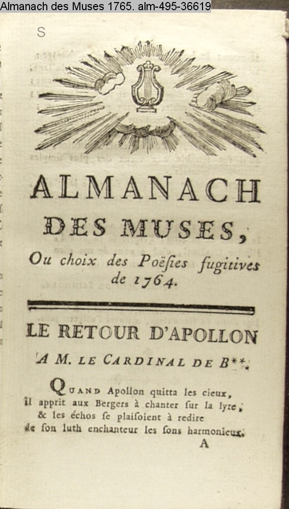 ALMANACH / DES MUSES, / Ou choix des Poësies fugitives / de 1764