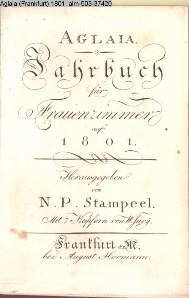 AGLAIA. / Jahrbuch / für / Frauenzimmer / auf / 1801. / Herausgegeben / von / N. P. Stampeel. / Mit 7 Kupfern von W. Jury. / Frankfurt a. M. / bei August Hermann