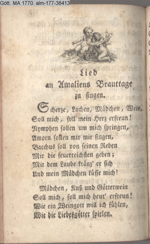 kleine Graphik über dem Gedicht »Lied an Amaliens Brauttage zu singen« von Gerstenberg