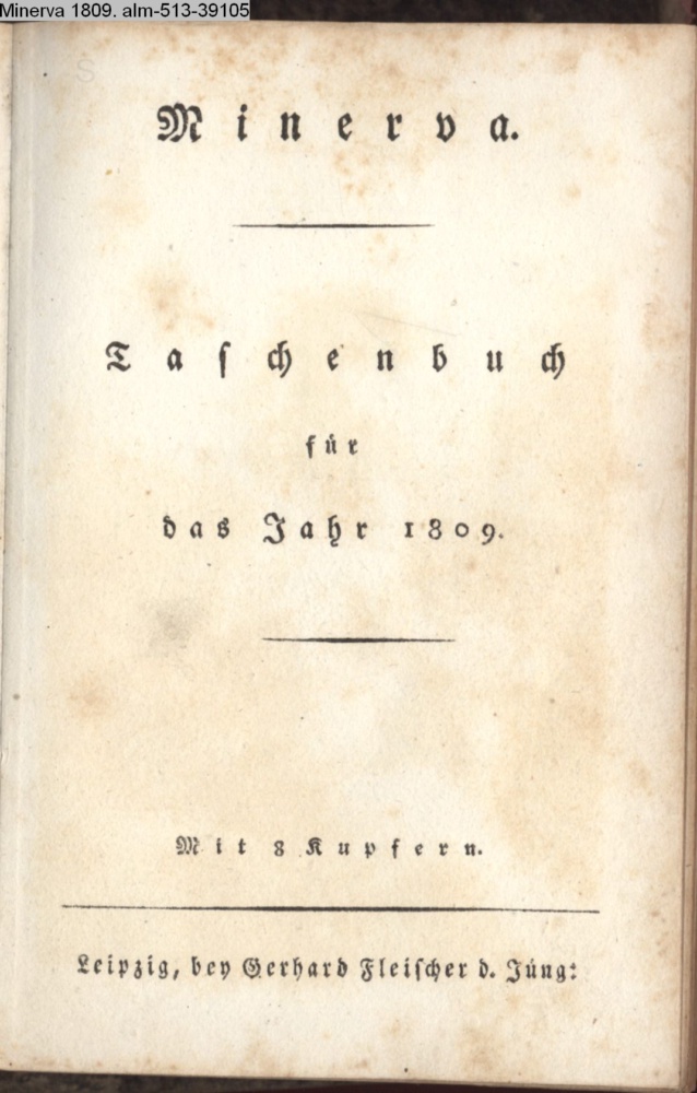 Minerva. / Taschenbuch / für / das Jahr 1809. / Mit 8 Kupfern. / Leipzig, bey Gerhard Fleischer d. Jüng.
