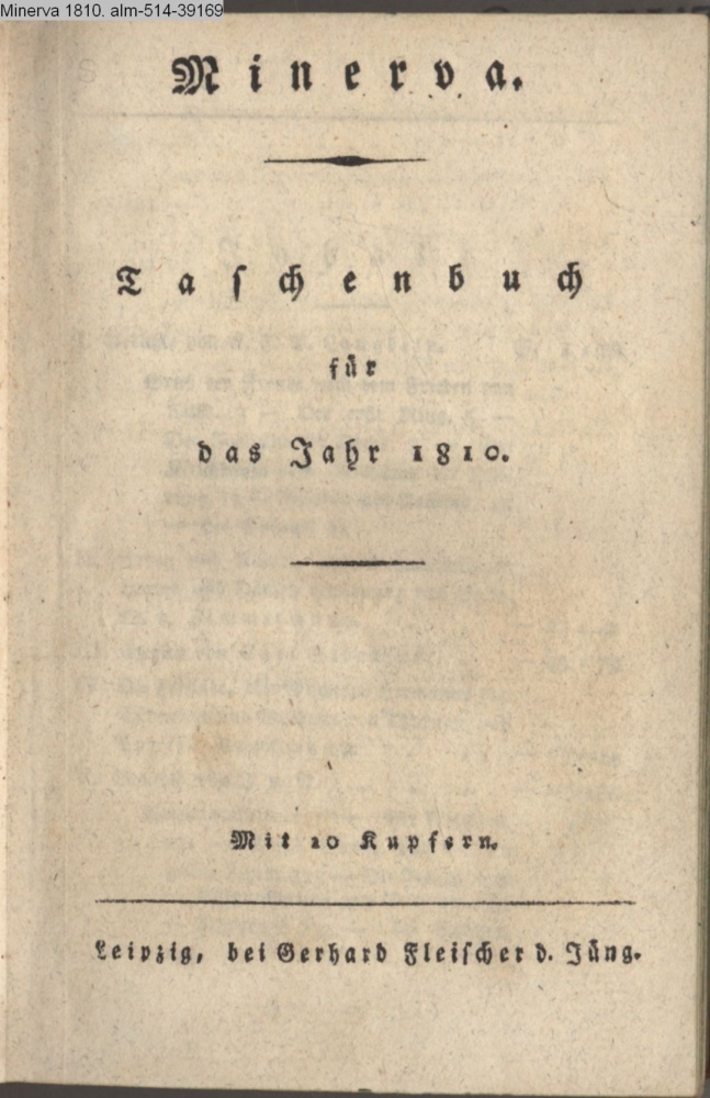 Minerva. / Taschenbuch / für / das Jahr 1810. / Mit 10 Kupfern. / Leipzig, bei Gerhard Fleischer d. Jüng.