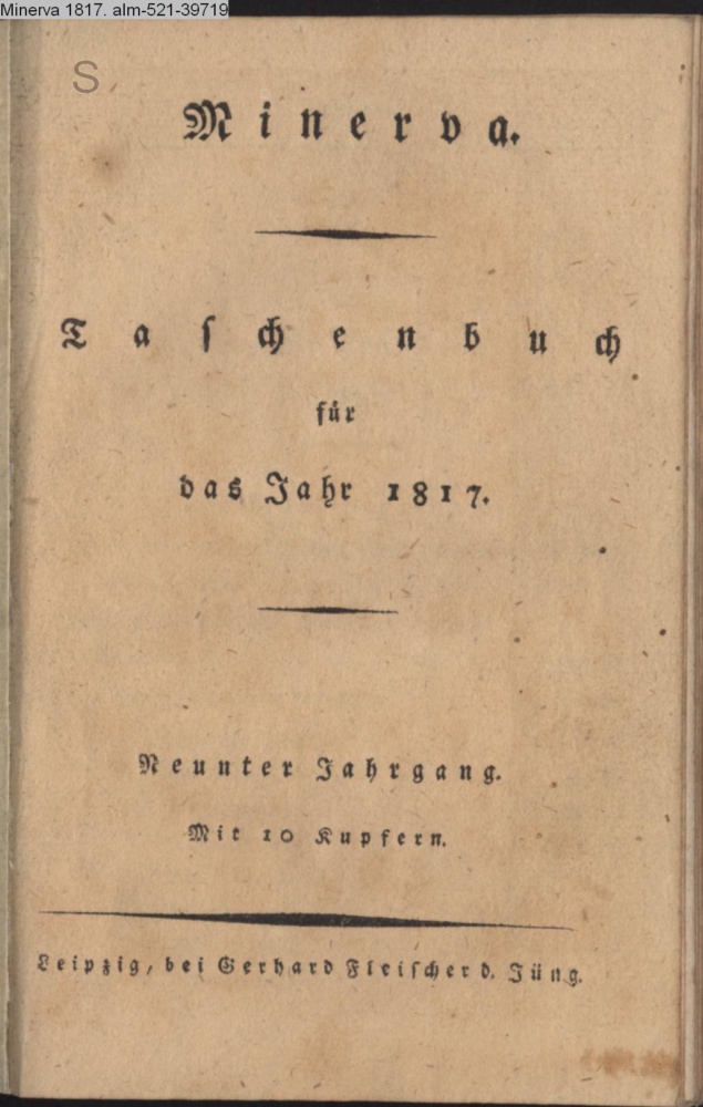 Minerva. / Taschenbuch / für / das Jahr 1817. / Neunter Jahrgang. / Mit 10 Kupfern. / Leipzig, bei Gerhard Fleischer d. Jüng.