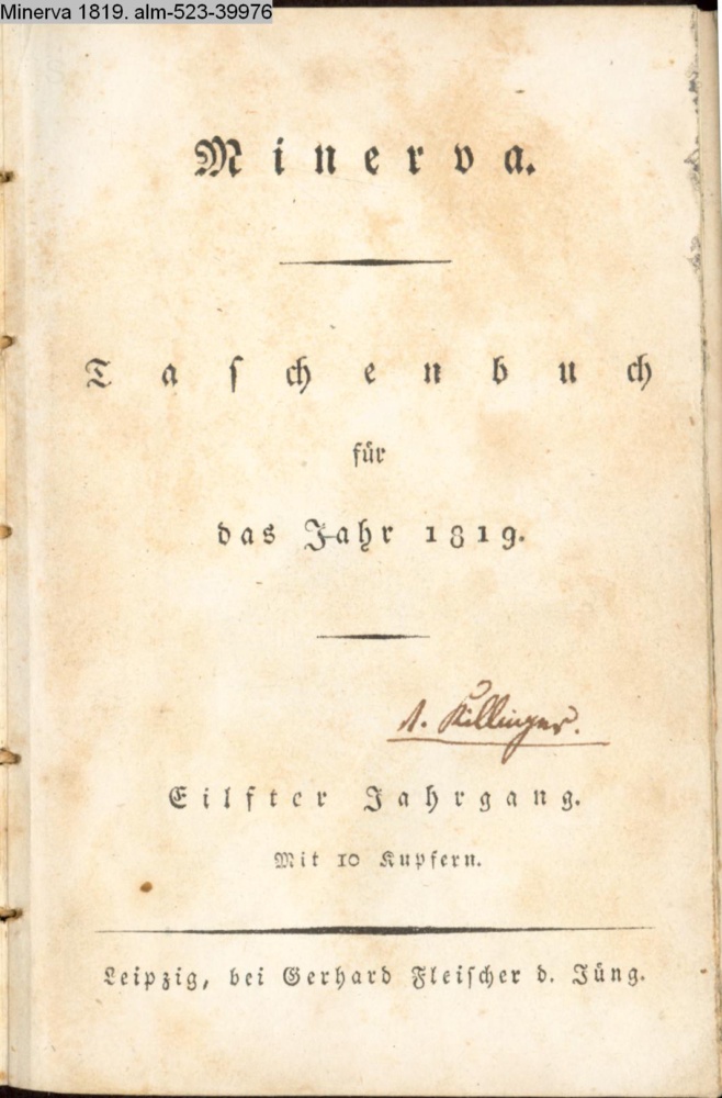 Minerva. / Taschenbuch / für / das Jahr 1819. / Eilfter Jahrgang. / Mit 10 Kupfern. / Leipzig, bei Gerhard Fleischer d. Jüng.