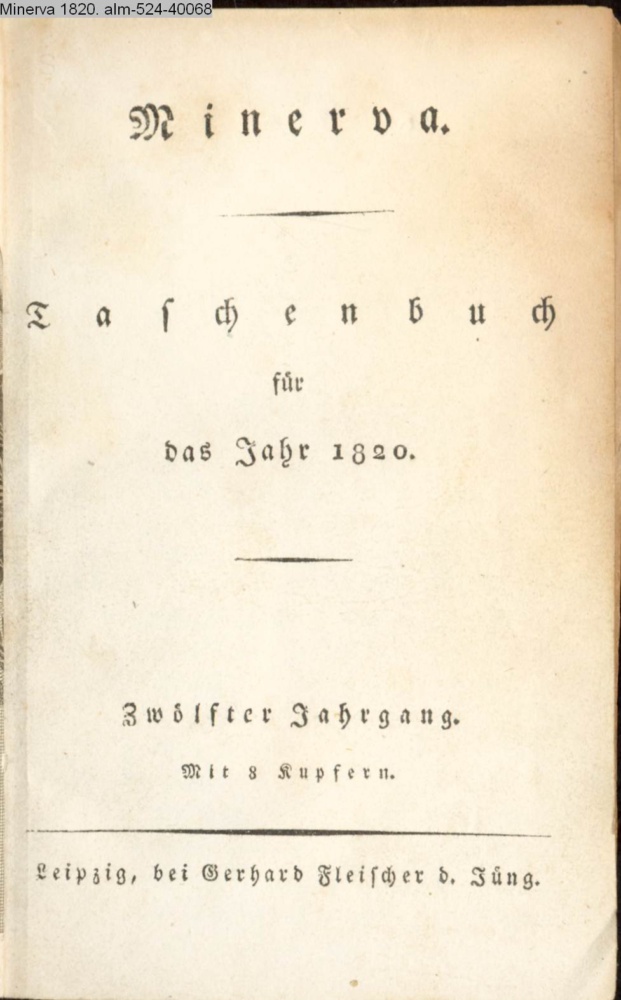 Minerva. / Taschenbuch / für / das Jahr 1820. / Zwölfter Jahrgang. / Mit 8 Kupfern. / Leipzig, bei Gerhard Fleischer d. Jüng.