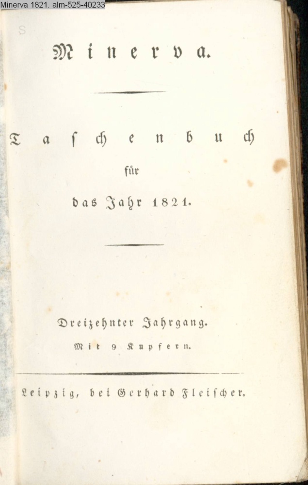 Minerva. / Taschenbuch / für / das Jahr 1821. / Dreizehnter Jahrgang. / Mit 9 Kupfern. / Leipzig, bei Gerhard Fleischer