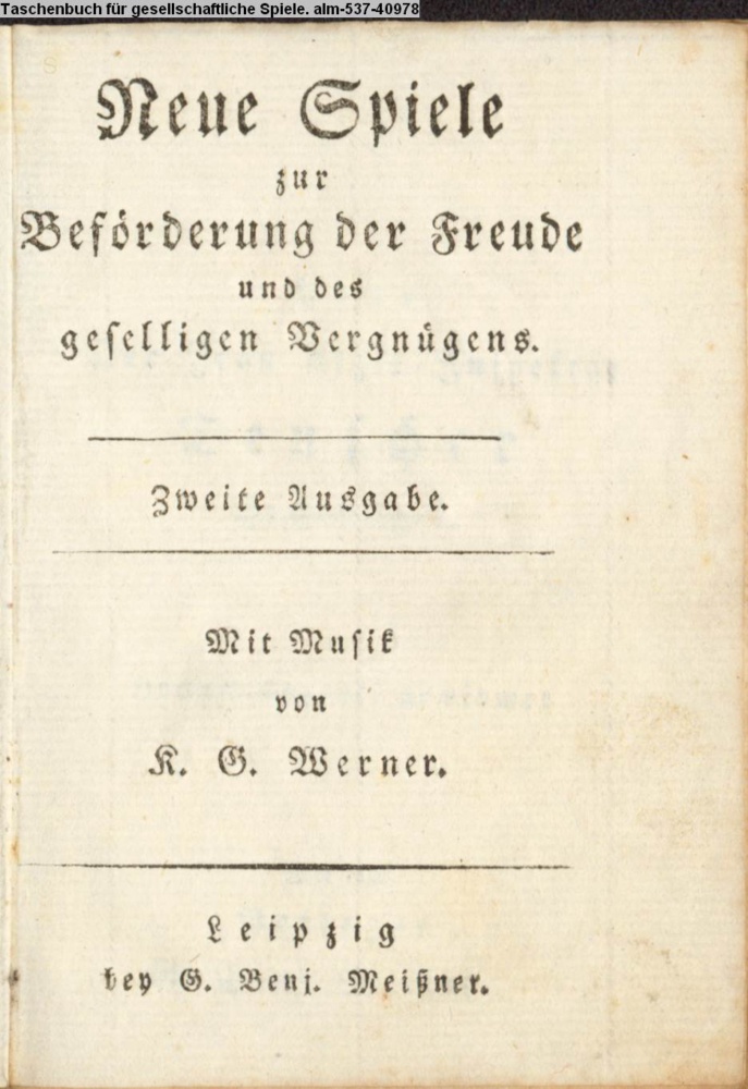 Taschenbuch / für / gesellschaftliche Spiele. / Mit Musik / von / K. G. Werner. / Leipzig / bey G. Benj. Meißner