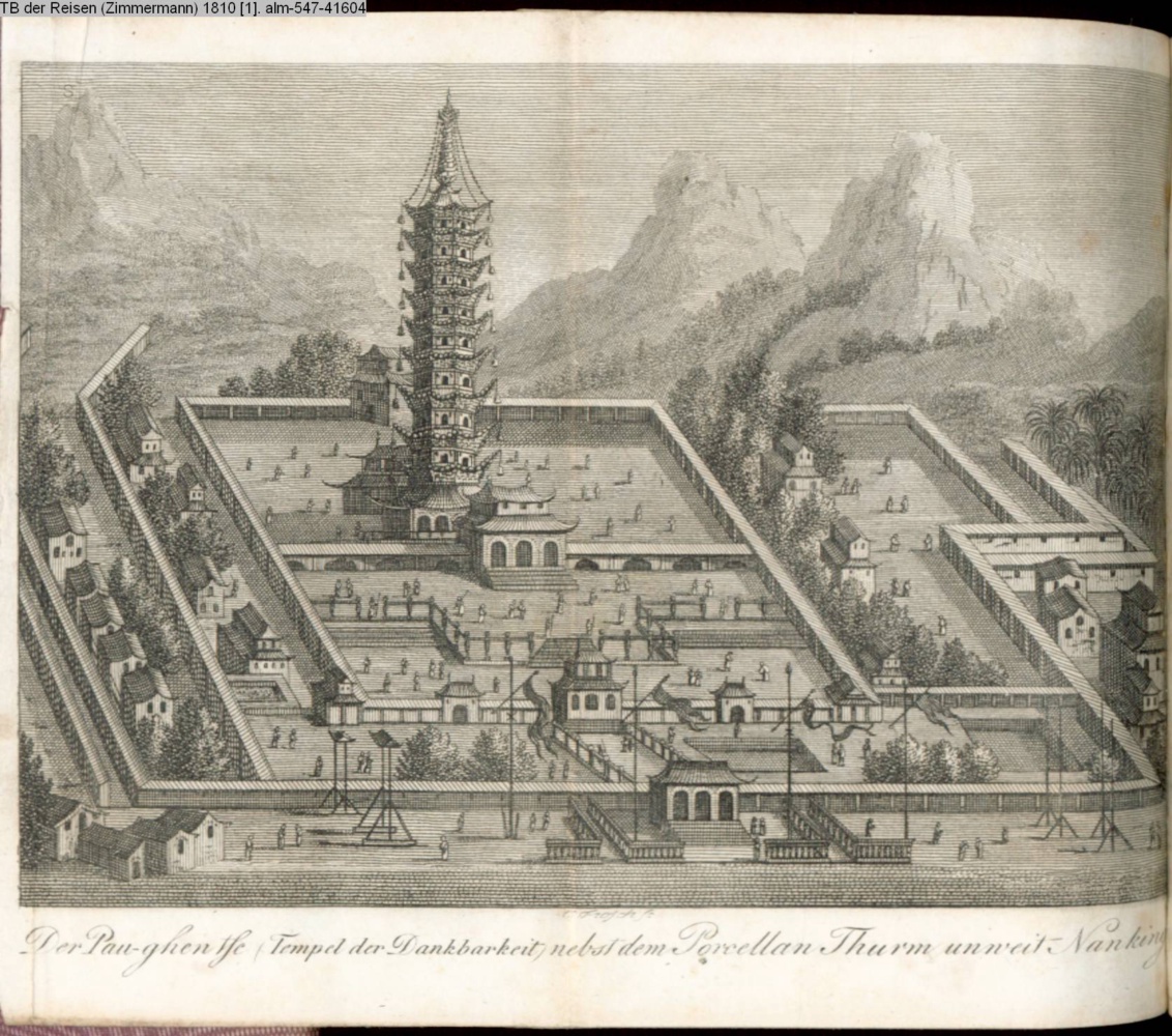 Der Pau-ghentshe (Tempel der Dankbarkeit) nebst dem Porcellan Thurm unweit Nanking