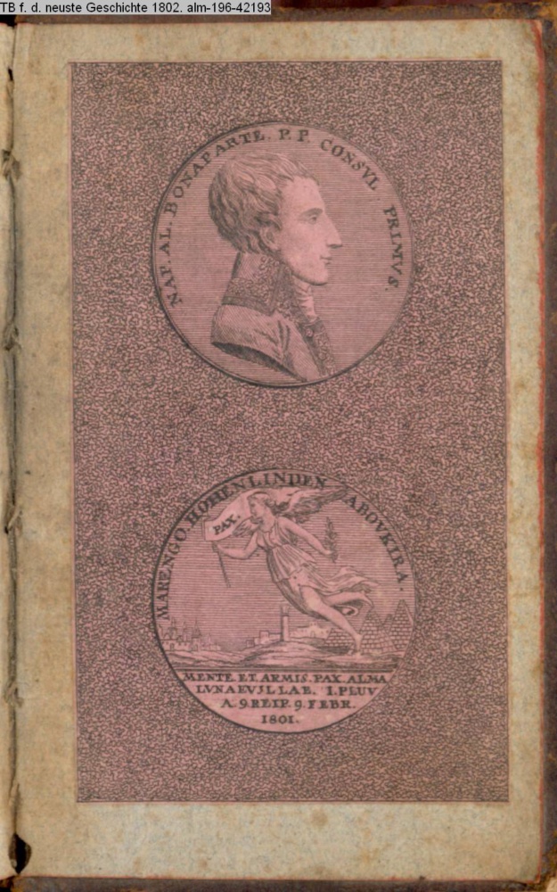 NAP. AL. BONAPARTE P. P. CONSUL PRIMUS // MARENGO. HOHENLINDEN. ABOUKIRA. // MENTE ET ARMIS. PAX. ALMA / LUNAEUSLLAE. I. PLUV. / A. 9. REIP. 9. FEBR. / 1801