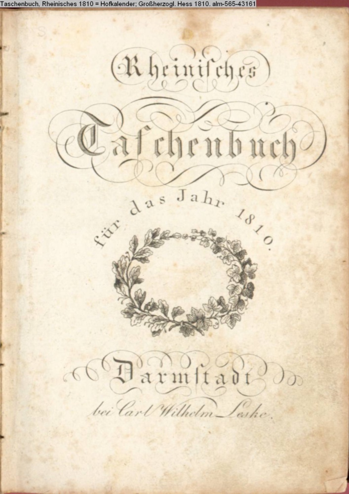 Taschenbuch, Rheinisches 1810; s. a. Hofkalender, Großherzoglich Hessischer 1810, Nr. 43161
