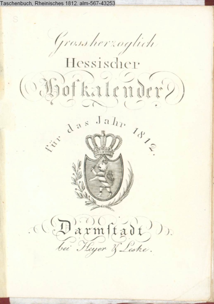 Grossherzoglich / Hessischer / Hofkalender / für das Jahr 1812. / Darmstadt / bei Heyer & Leske