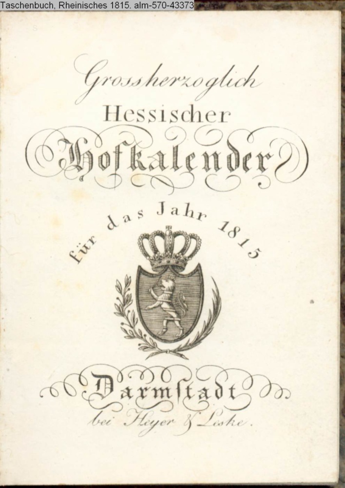 Hofkalender, Großherzoglich Hessischer 1815; s. a. Taschenbuch, Rheinisches 1815, Nr. 43373