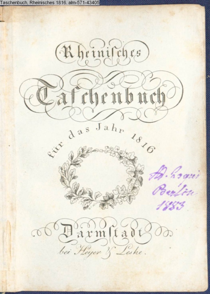 Rheinisches / Taschenbuch / für das Jahr 1816 / Darmstadt / bei Heyer & Leske