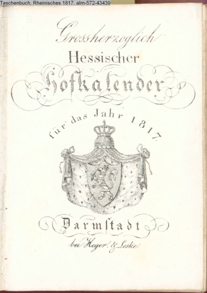 Taschenbuch, Rheinisches 1817; s. a. Hofkalender, Großherzoglich Hessischer 1817, Nr. 43439