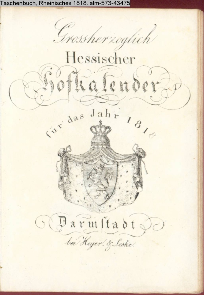 Hofkalender, Großherzoglich Hessischer 1818; s. a. Taschenbuch, Rheinisches 1818, Nr. 43475