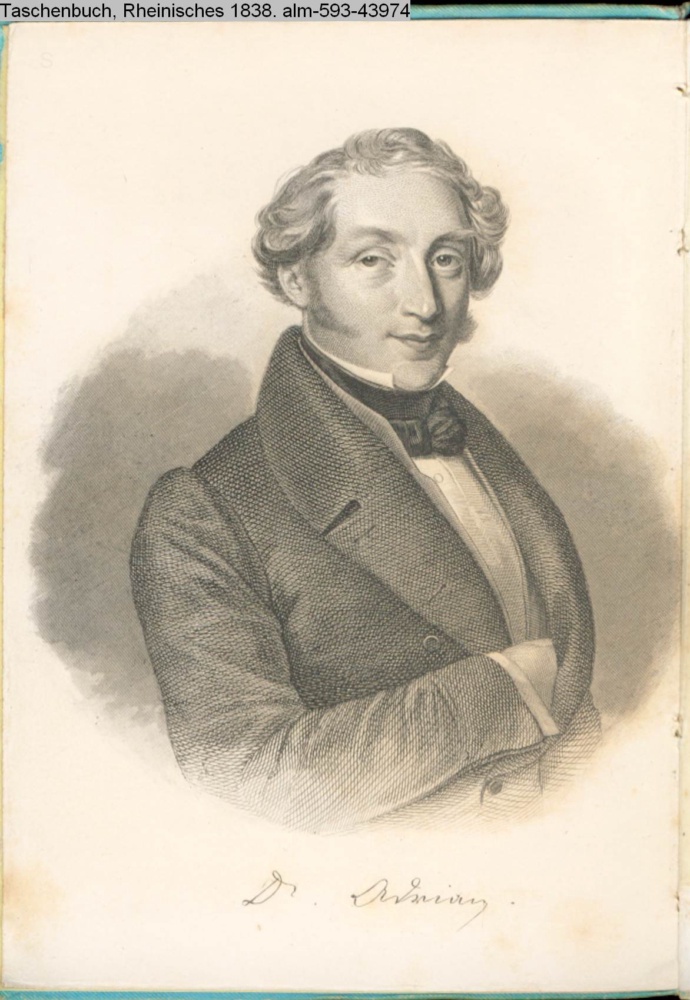 Rheinisches / Taschenbuch / auf das Jahr 1838. / Herausgegeben / von / Dr. Adrian. / Mit 7 Stahlstichen. / Frankfurt am Main. / Druck und Verlag von Johann David Sauerländer