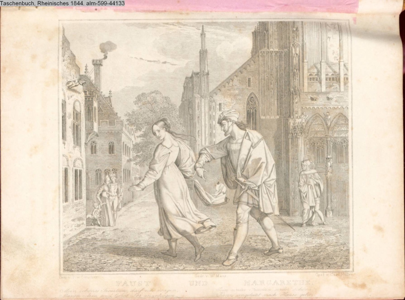 FAUST UND MARGARETHE / Mein schönes Fräulein darf ich wagen, / Meinen Arm und Geleit Ihr anzutragen? / Bin weder Fräulein, weder schön, Kann ungeleit' nach Hause gehen