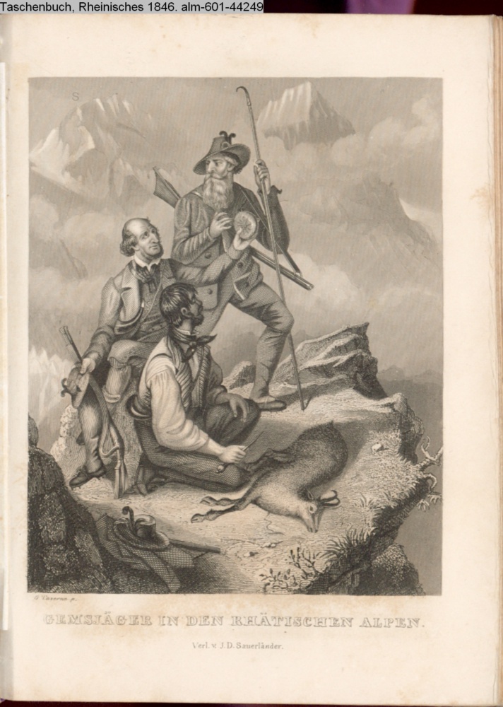 Gemsjäger in den rhätischen Alpen. / Gemalt von Gaudenz Taverna