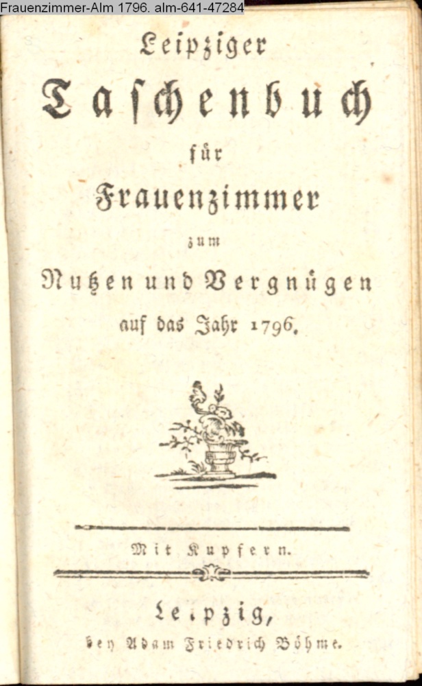 Leipziger / Taschenbuch / für / Frauenzimmer / zum / Nutzen und Vergnügen / auf das Jahr 1796. / Mit Kupfern. / Leipzig, / bey Adam Friedrich Böhme