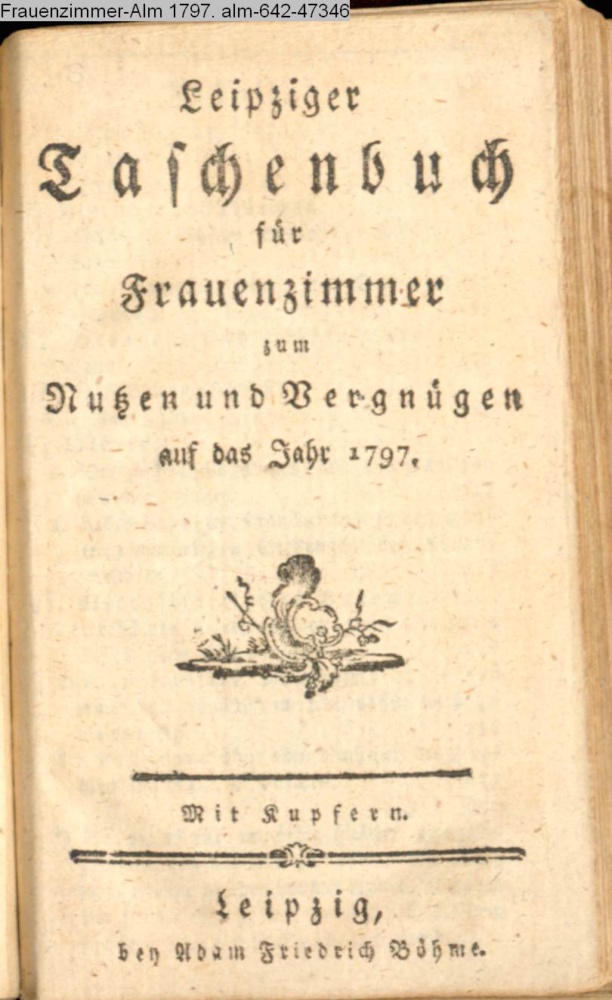 Leipziger / Taschenbuch / für / Frauenzimmer / zum / Nutzen und Vergnügen, / auf das Jahr 1797. / Mit Kupfern. / Leipzig, / bey Adam Friedrich Böhme