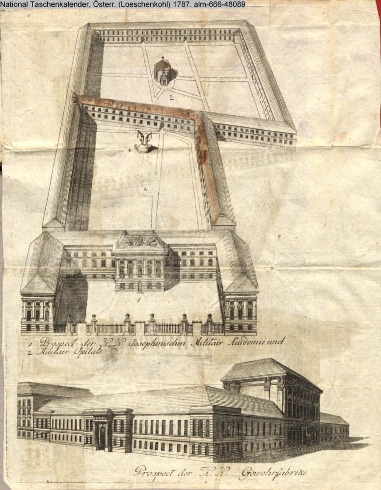 Prospect / Des für alle Kranken und Gebährenden gewidmeten Neuen / Allgemeinen Spitals in Wien / SALUTI ET SOLATIO / AEGRORUM / IOSEPHUS II AUG / ANNO MDCCLXXXIV