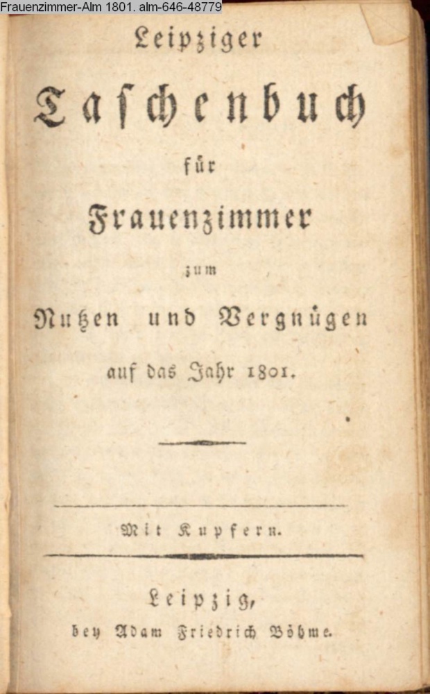Leipziger / Taschenbuch / für / Frauenzimmer / zum / Nutzen und Vergnügen / auf das Jahr 1801. / Mit Kupfern. / Leipzig, / bey Adam Friedrich Böhme