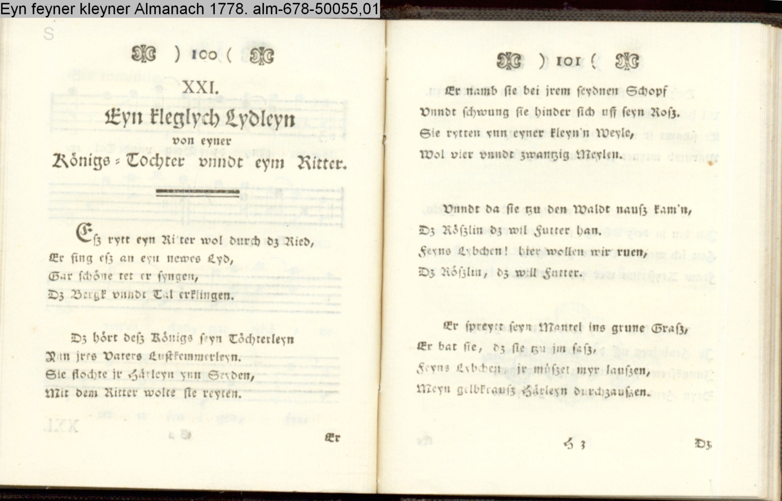 XXI. / Eyn kleglych Lydleyn / von eyner / Königs-Tochter unndt eym Ritter