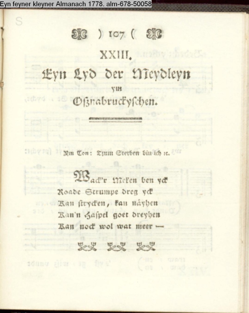 XXIII. / Eyn Lyd der Meydleyn / ym / Oßnabruckyschen. / Ym Ton: Tzum Sterben bin ich etc