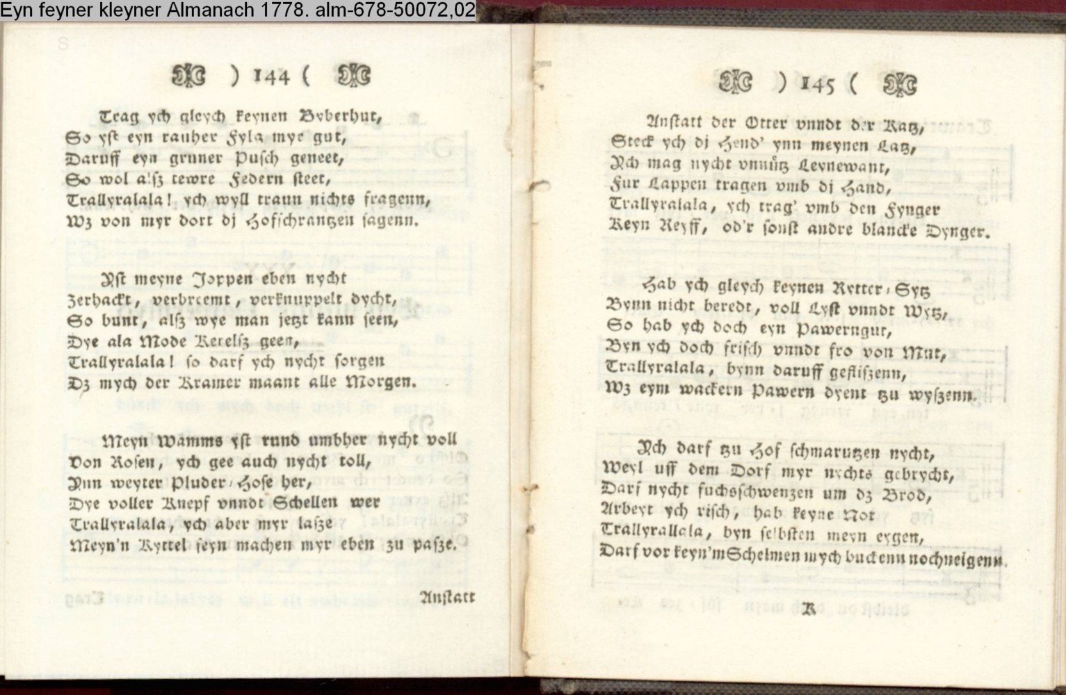 Ych bynn eyn freyer Pawersknecht; / Obschon meyn Stand ist ebenn schlecht,…
