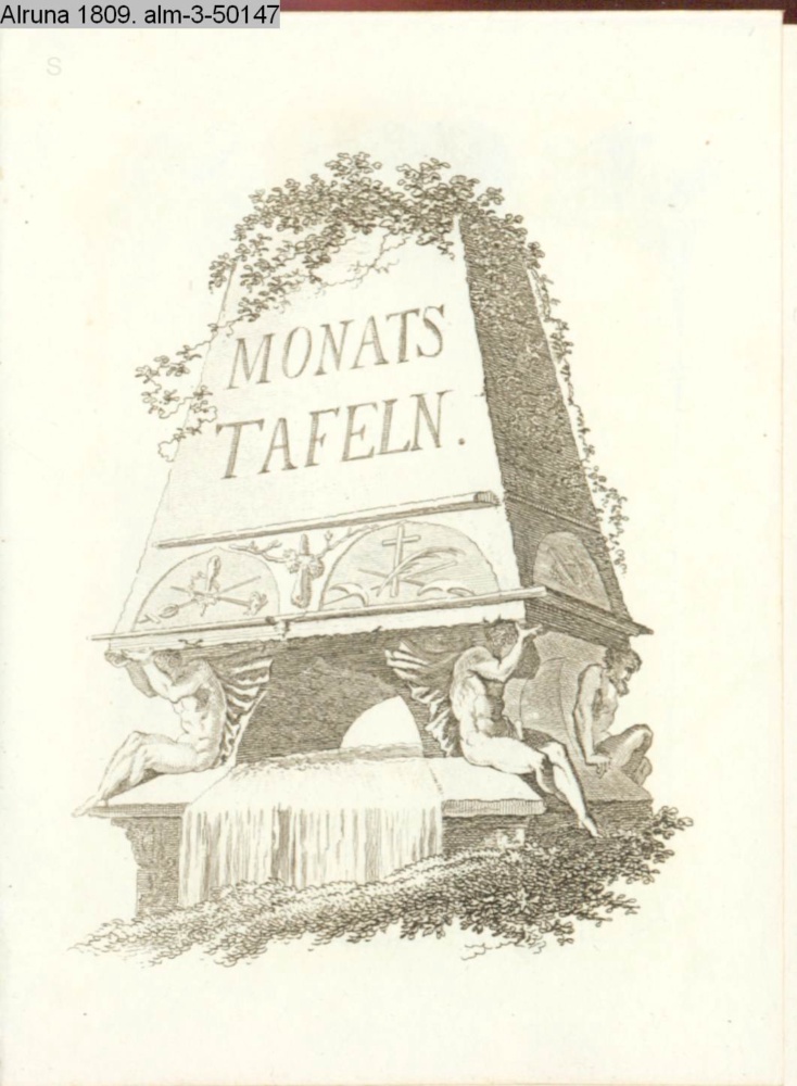 Alruna. / Ein / Taschenbuch für Freunde / der / deutschen Vorzeit / Dritter Jahrgang / 1809 / Die güldene Halskette / mit zehn Bildern / nach J. M. Usteri, von H. Lips-. / Zürich und Leipzig, / bey J. H. Füßli, Sohn, und in Commission / bey J. B. Schiegg