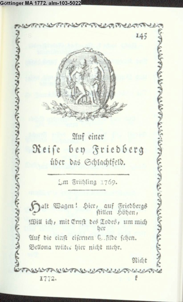Auf einer / Reise bey Friedberg / über das Schlachtfeld / Im Frühling 1769