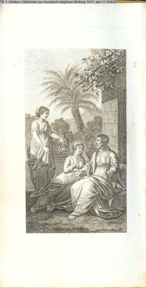 Taschenbuch / für / Weiber und Mädchen / zur / moralisch-religiösen Bildung / in / charakteristischen Gemählden. / Herausgegeben / von / Friedrich Ehrenberg. / Königlichem Hofprediger zu Berlin. / Mit einem Titelkupfer. / Reutlingen, in der J. J. Mäcken'schen Buchhandlung. / 1810