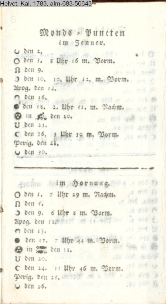 Kalender, Helvetischer 1783, Nr. 50643