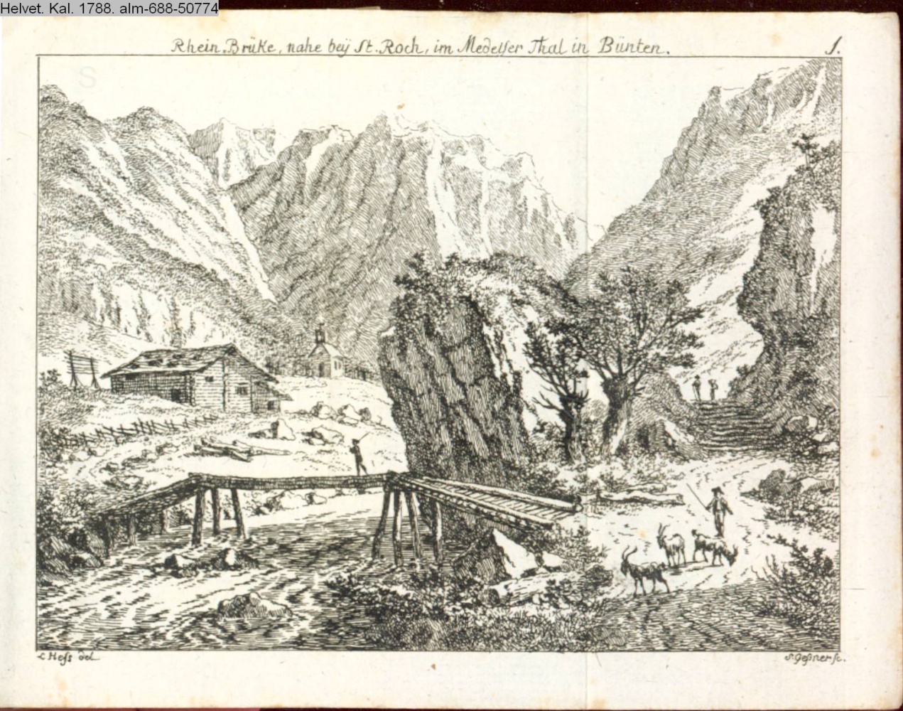 Rhein-Brüke, nahe bey St. Roch, im Medesser Thal in Bünten