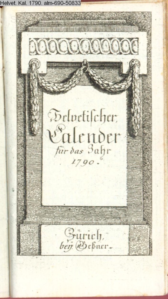 Helvetischer / Calender / für das Jahr / 1790. / Zürich, / bey Geßner