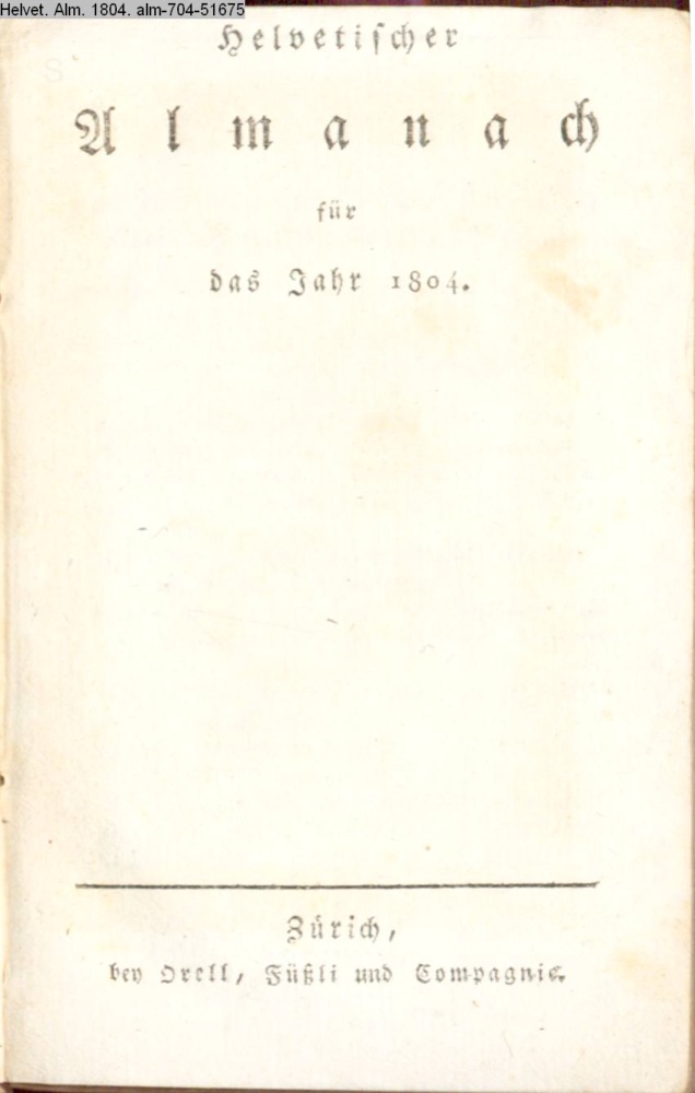 Helvetischer / Almanach / für / das Jahr 1804. / Zürich, / bey Orell, Füßli und Compagnie