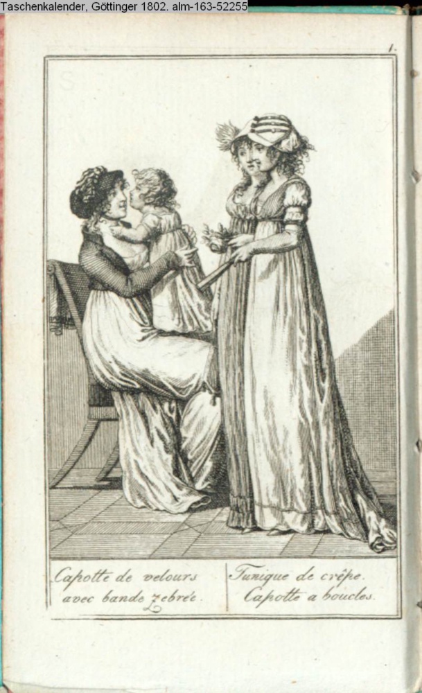 Capotte de velours / avec bande zebrée. / Tuique de crêpe. / Capotte a boucles