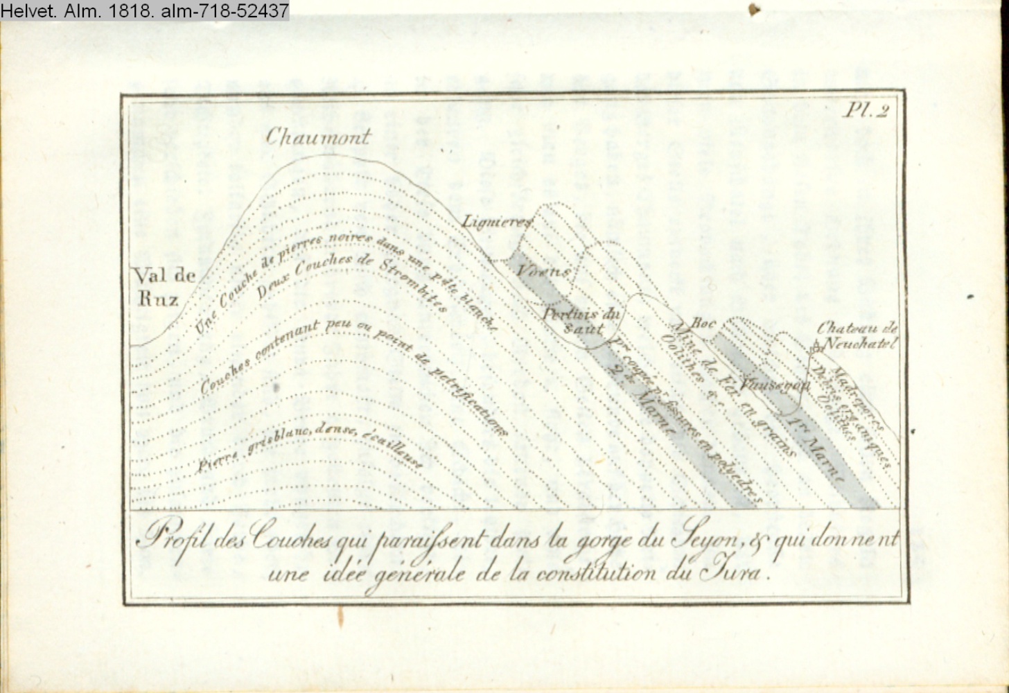 Profil des Couches qui paraissent dans la gorge du Seyon, & qui donnent une idée générale de la constitution du Jura
