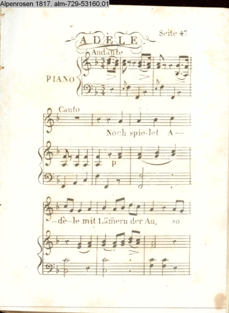 Vertonung des Gedichts »Adele« von J. R. Wysz d.Ä.