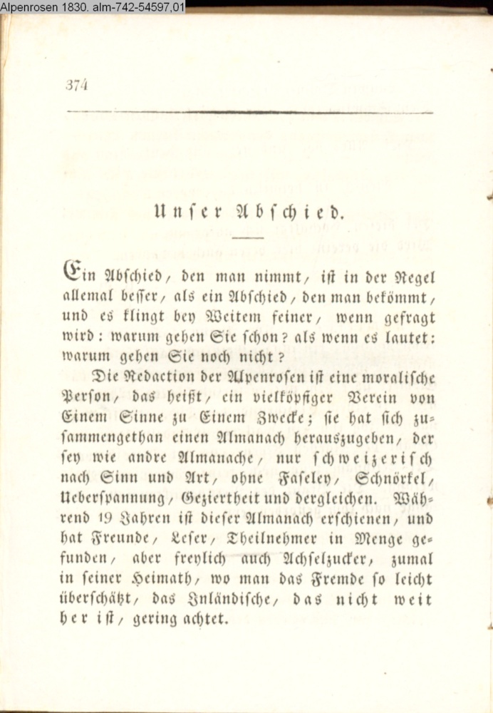 Erklärung der Redaktion zur Einstellung des Alpenrosen