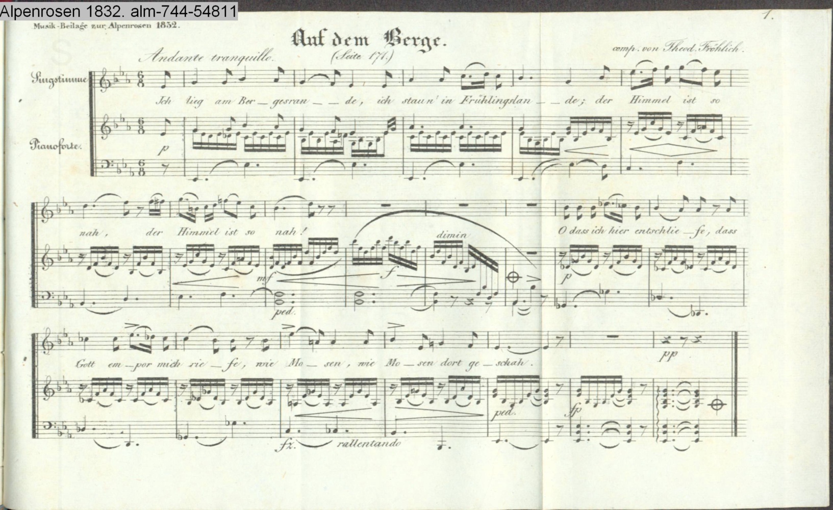 Vertonung des Gedichts »Auf dem Berge« von A. E. Fröhlich