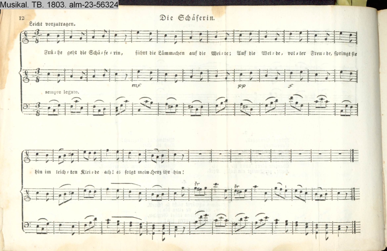 Lieder zum musikalischen Taschenbuche 1803 der Brüder Werden componirt von Wilhelm Schneider (Sammlung INr 56317, Obj 79)