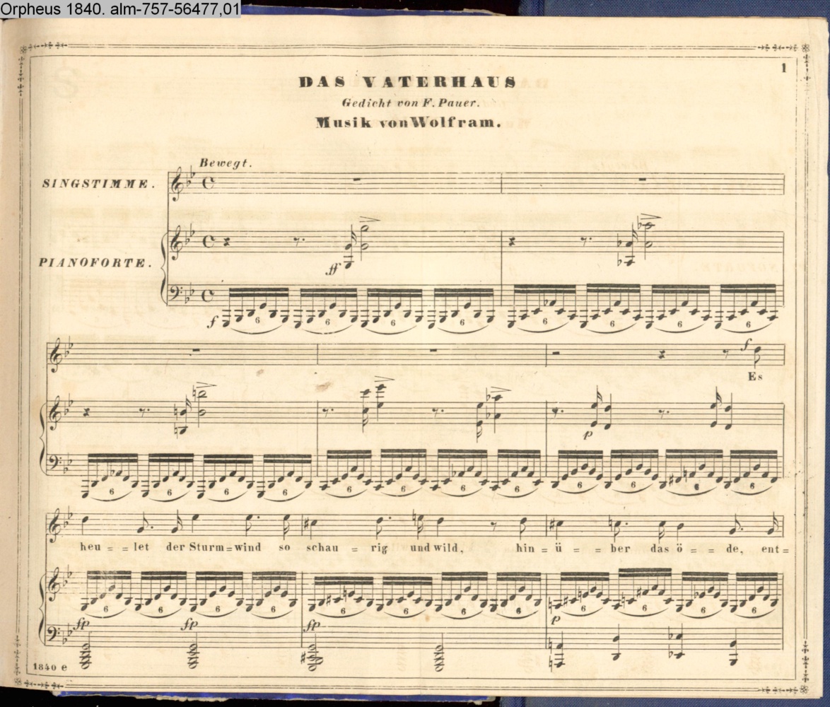 DAS VATERHAUS / Gedicht von F. Pauer. / Musik von Wolfram