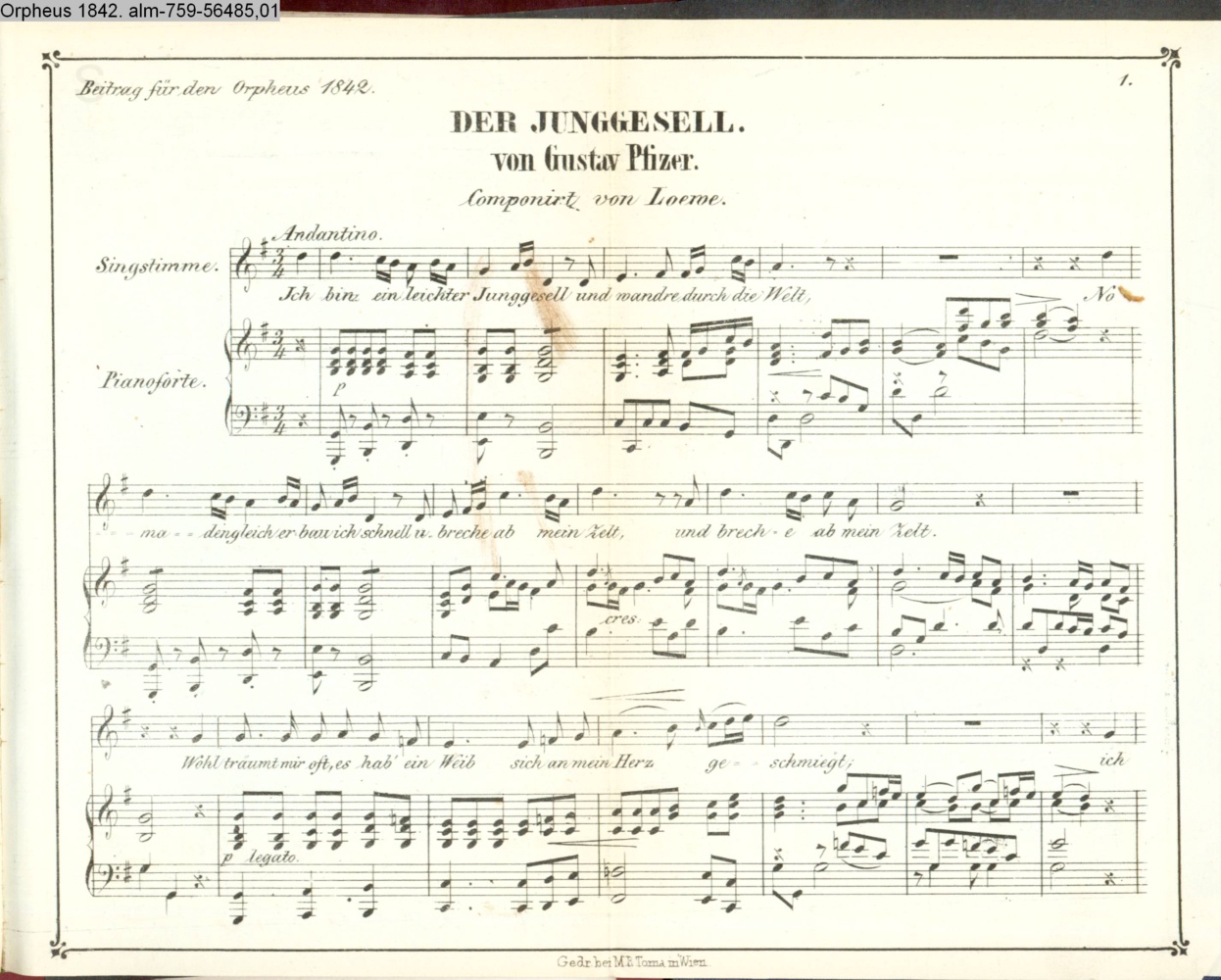 am Objekt: Beitrag für den Orpheus 1842; Gedr. b. M. R. Toma in Wien