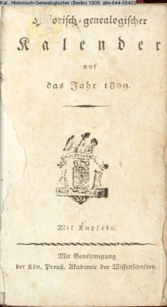 Kalender, Historisch-Genealogischer (Berlin) 1809, Nr. 58403