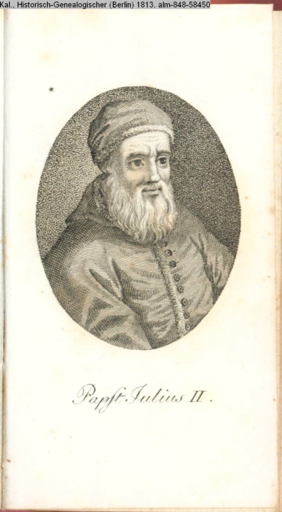 Graphik (Portrait) vor dem Kalendarium. Illustration zu »Die Schlacht bei Ravenna, 1512«