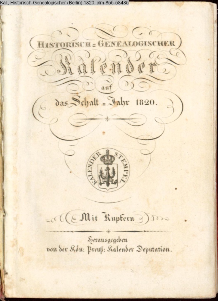 Kalender, Historisch-Genealogischer (Berlin) 1820
