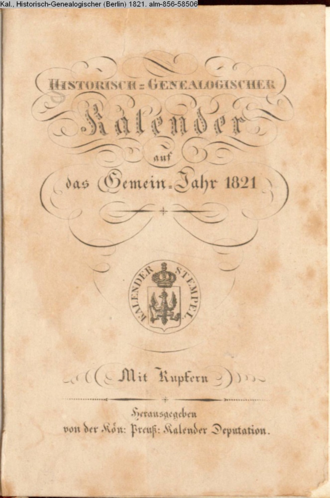 Kalender, Historisch-Genealogischer (Berlin) 1821