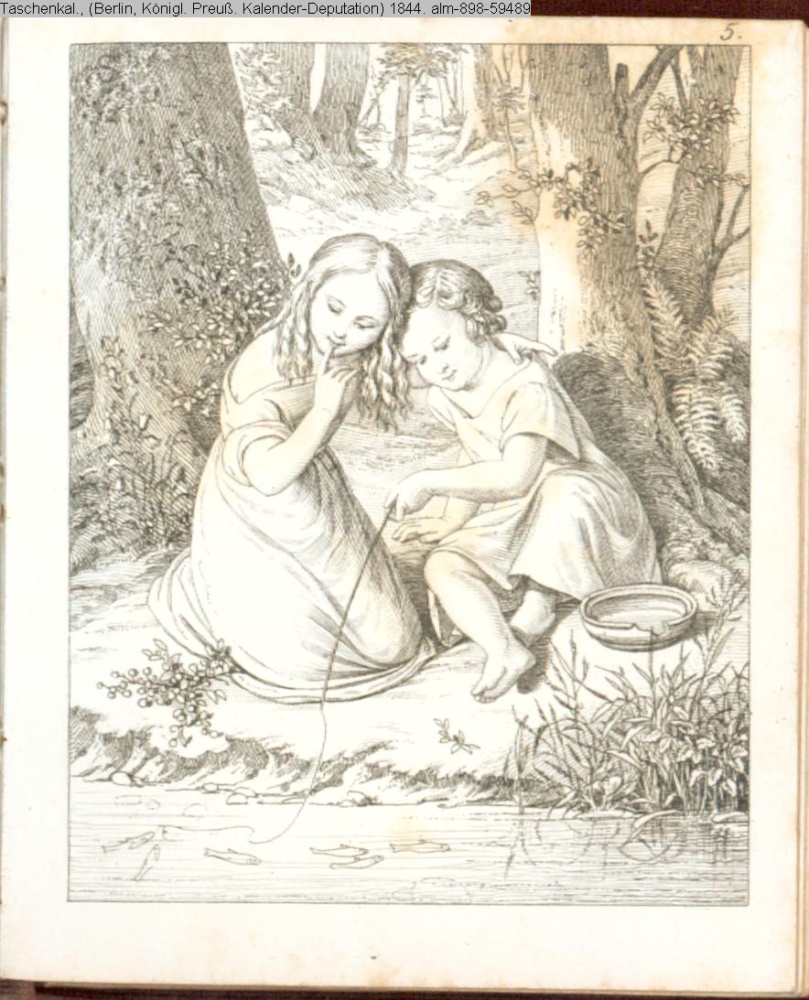 Graphik im Kalendarium Juni; paginiert 5. Illustration zu »Die fischenden Kinder« von H. Kletke