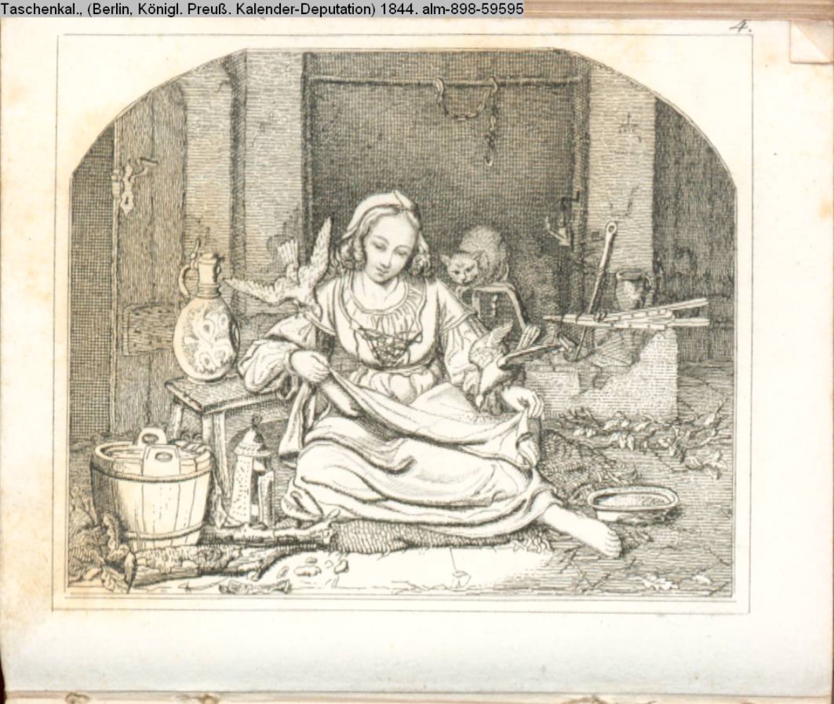 paginiert 4. Illustration zu »Aschenbrödel« von E. Ferrand d.i. Ed. Schulz INr 59594, Obj 112 # Titel vom Textbezug