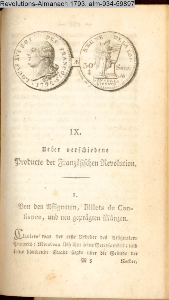 1. / Von den Assignaten, Billets de Con-/ fiance, und neu geprägten Münzen